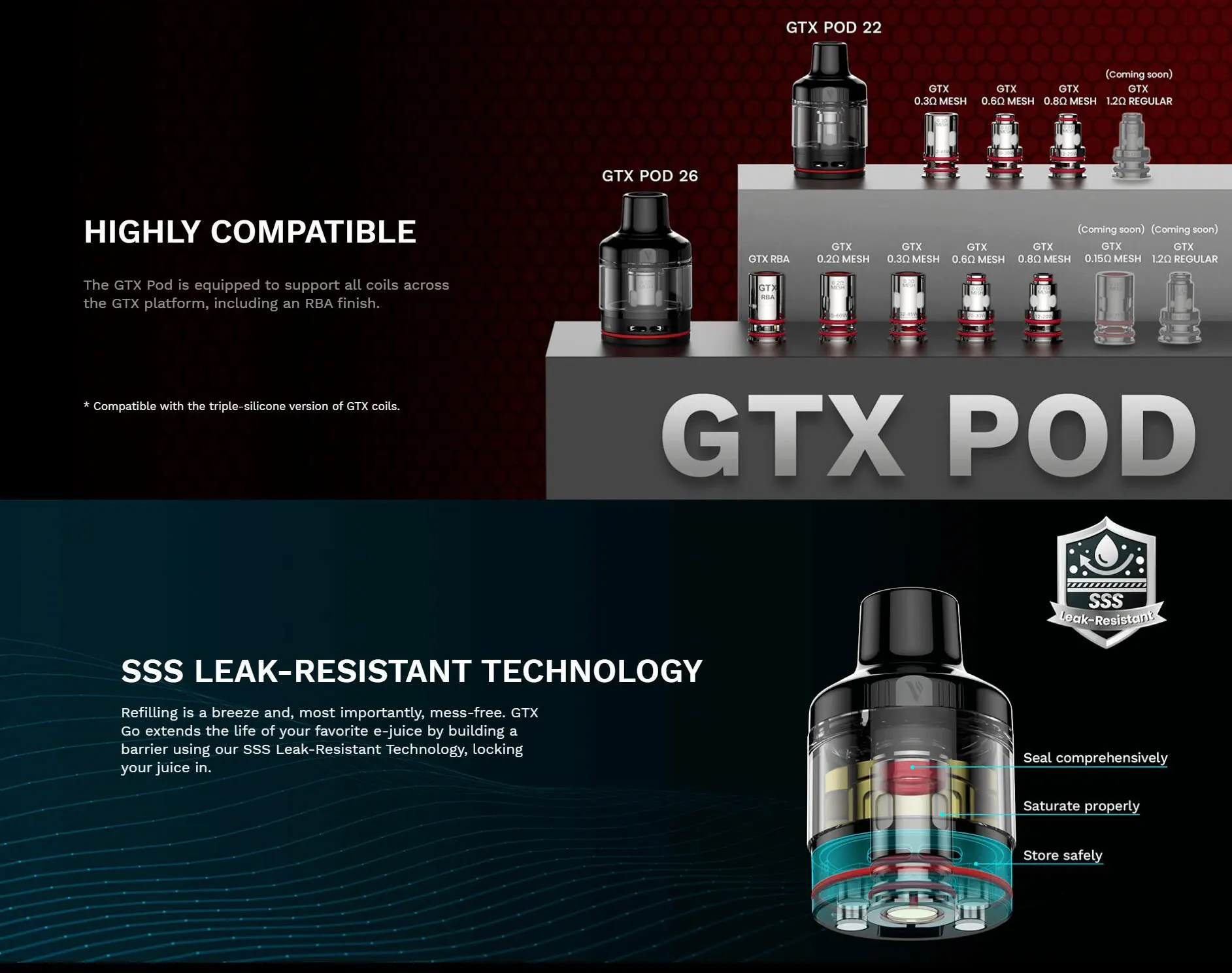 Bobine: bobine de maille GTX 0,6 ohm (20-30W)/bobine de maille GTX 0,2 ohm (45-60W)