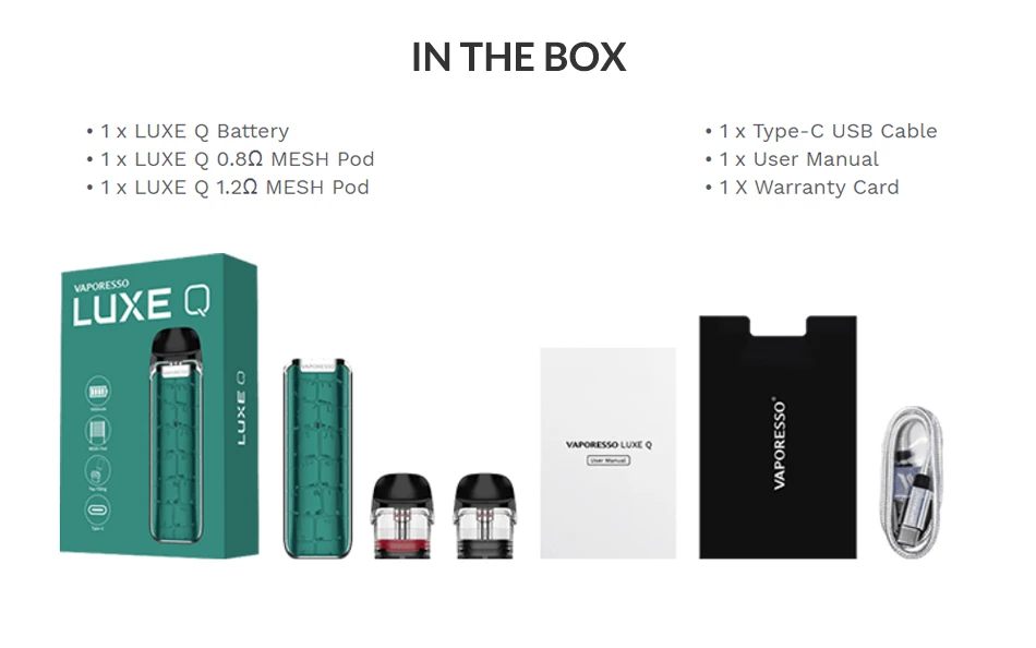 Le paquet de LUXE Q Pod Kit est livré avec: