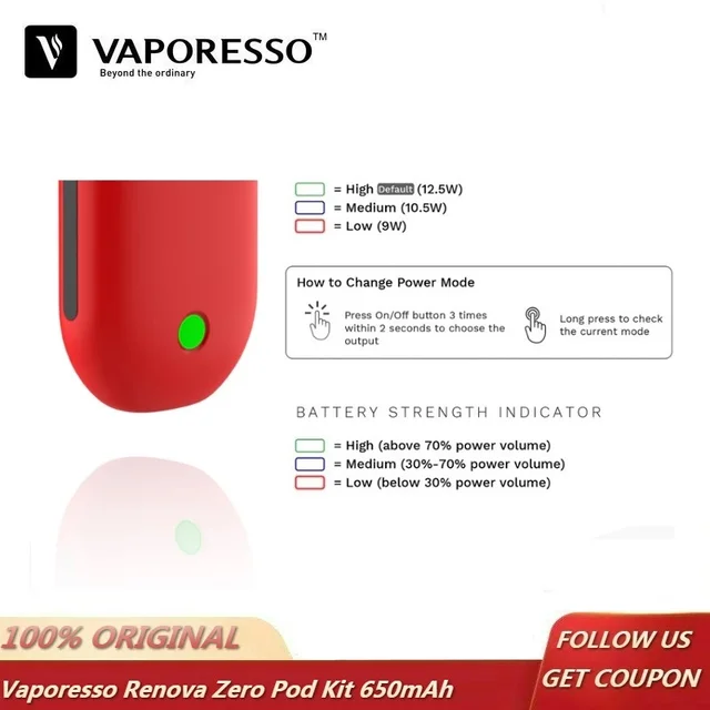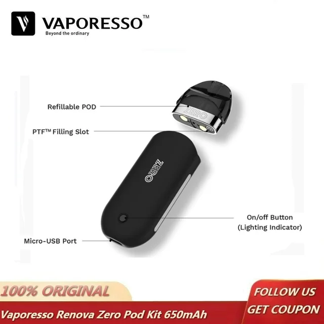 De Vaporesso,RENOVA ZeroA réinitialisé la barre pour les systèmes de dosettes rechargeables. Il est livré avec un nouveau système de remplissage innovant à l’épreuve des enfants, l’étonnant mécanisme «press to fill» (PTF), qui permet un remplissage facile et réduit considérablement les fuites. Le bord de pointe Omni Board Mini de RENOVA offre de multiples protections de sécurité. La batterie intégrée de 650mAh comprend une technologie de charge rapide pour réduire le temps de charge de moitié.