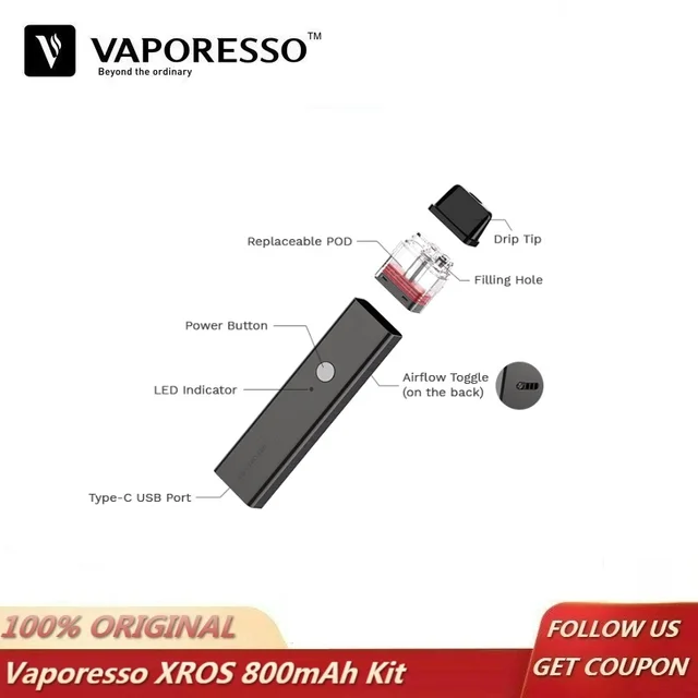 Vaporesso – Kit de vapotage XROS Original, batterie intégrée de 800mAh avec cartouche de dosette en maille de 2ml, pour e-cigarette par AXON Chip VS Minifit Zero