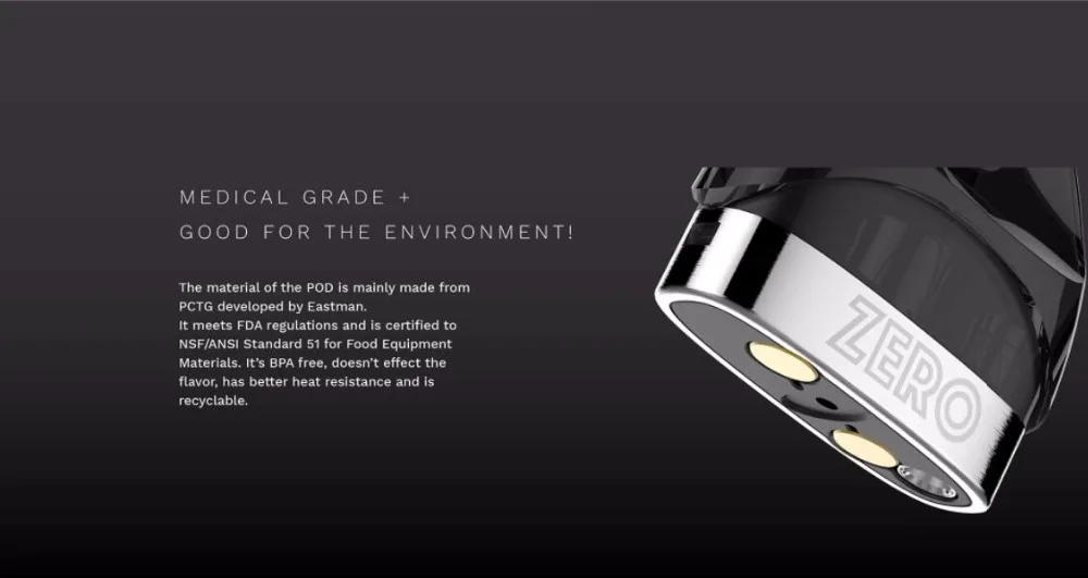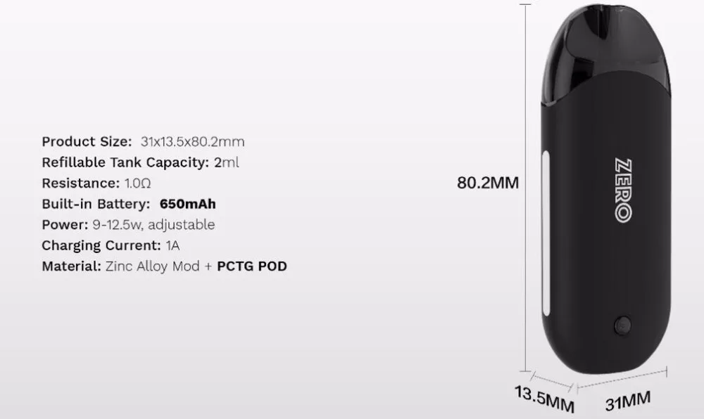 Pod: 1 x Pod ZERO CCELL (1.3Ω); 1 x Pod ZERO MESH (1.0Ω)