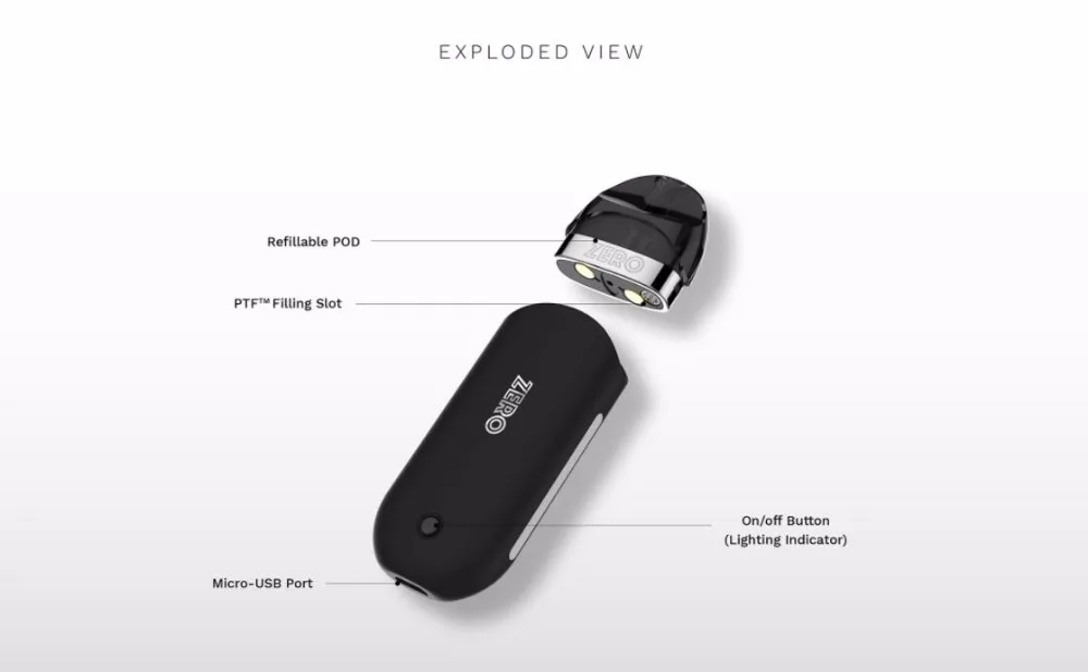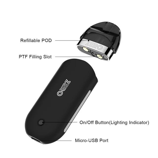 Zero Kit est célèbre comme le stimulateur du système de dosettes rechargeables. Il est composé d’une batterie intégrée de 650mAh et de 2 types de cartouche de pod: Pod CCELL de 1,3ohm et Pod MESH de 1,0ohm. Quant à la cartouche de dosette, elle a une capacité de 2ml de jus électronique et adopte une conception de remplissage par le bas innovante: appuyer pour remplir (PTF), ce qui rend le remplissage aussi simple que possible, réduisant considérablement les fuites. Et il est conçu avec une zone de chauffage 5 fois plus grande pour améliorer la saveur. En outre, il utilise une conception de puissance de sortie réglable à 3 niveaux pour fournir plusieurs options de saveur, vous permettant de découvrir différents goûts et de sélectionner celui que vous aimez.