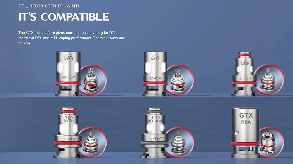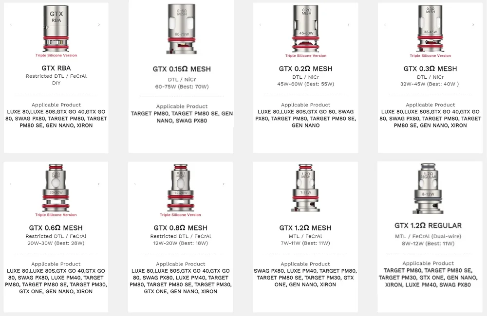 LUXE 80, LUXE 80 S,GTX GO 40,GTX GO 80, SWAG PX80, LUXE PM40, TARGET PM80, TARGET PM80 SE, TARGET PM30, GTX ONE, GEN NANO, XIRON