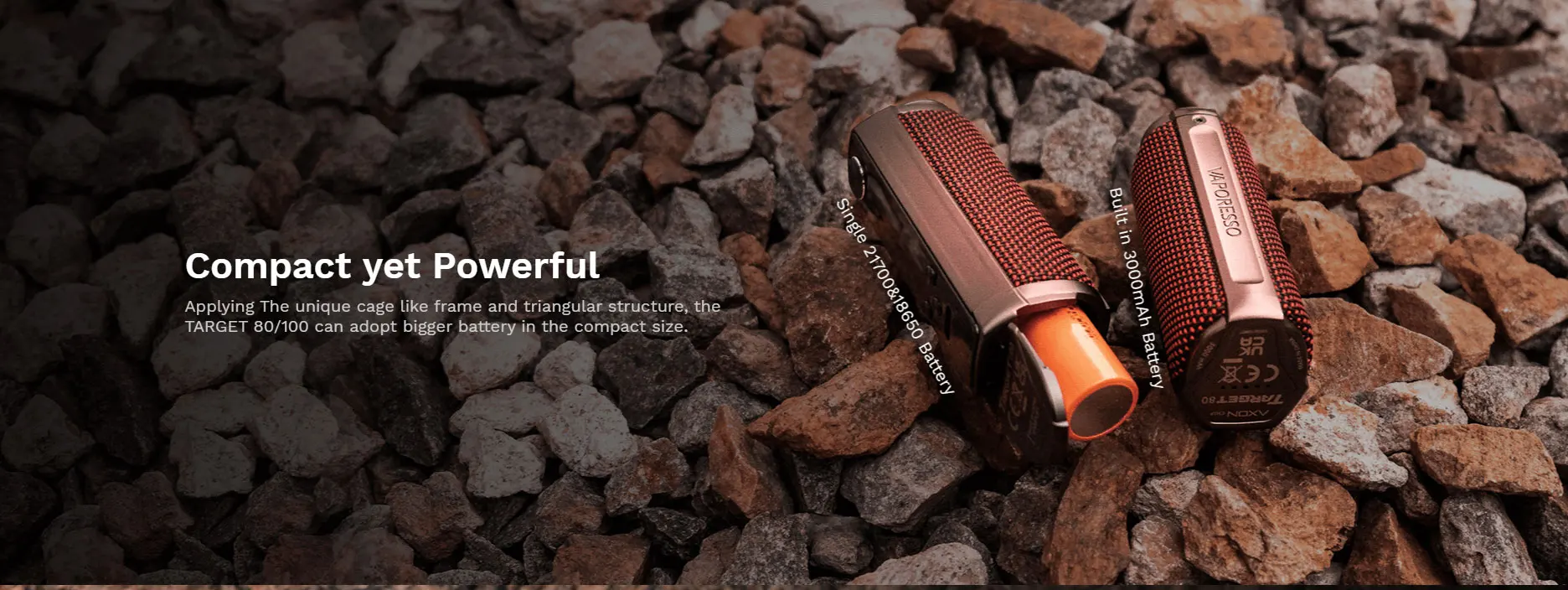 TARGET 00 sont les nouveaux membres de la série VAPORESSO TARGET, la batterie intégrée et la version à batterie unique. Le cadre unique en forme de cage et la tresse innovante résistante à l’eau rendent le mod plus durable et confortable en main. Il permet également une taille compacte pour une batterie plus grande.