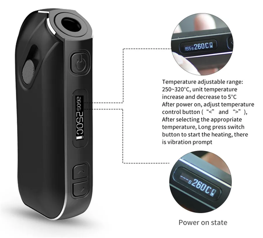 Vapoteur Kit P2 adapté IQO tabac herbe sèche E Papieros boîte Mod batterie 1300mah adapté pour Heets Caliburn elektron Nargile