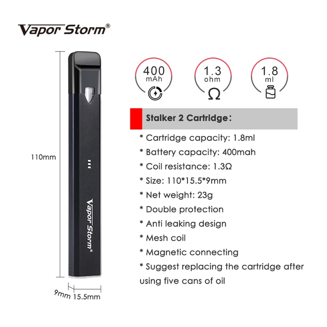 Vapoteur Storm Stalker II, système de dosettes aimantées, Cigarette électronique, bobine de maille, cartouche de 1.8ml, stylo vapoteur, batterie 400mah