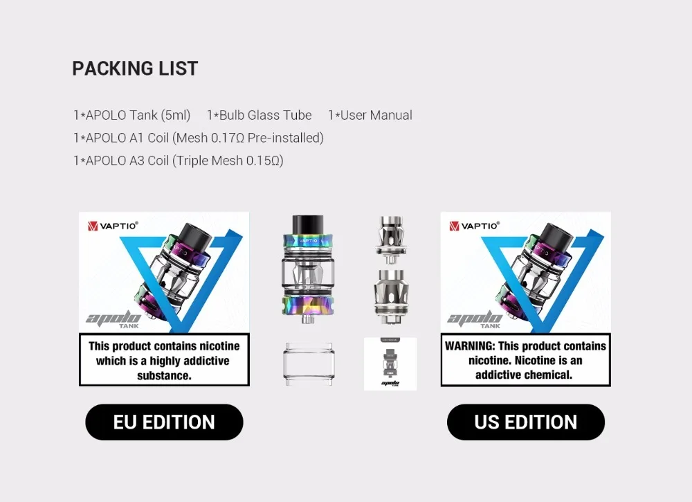 Vaptio APOLO – atomiseur, réservoir d’une capacité de 5ml, remplissage par le haut, étanche aux cigarettes électroniques, flux d’air inférieur Direct vers la bobine