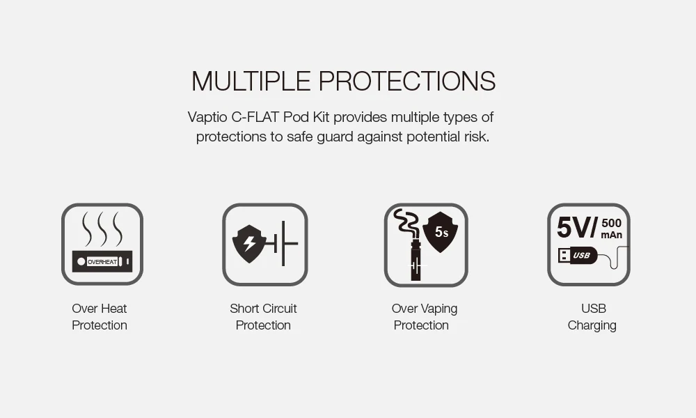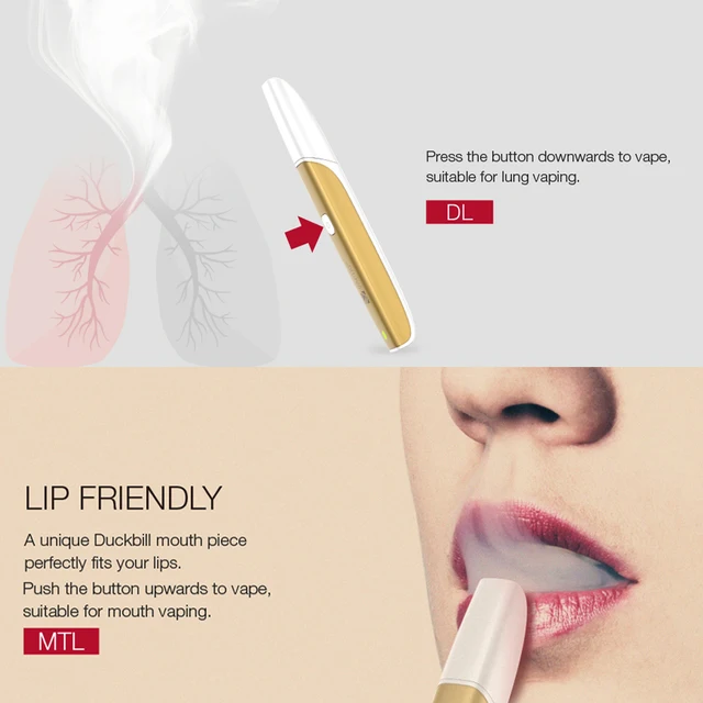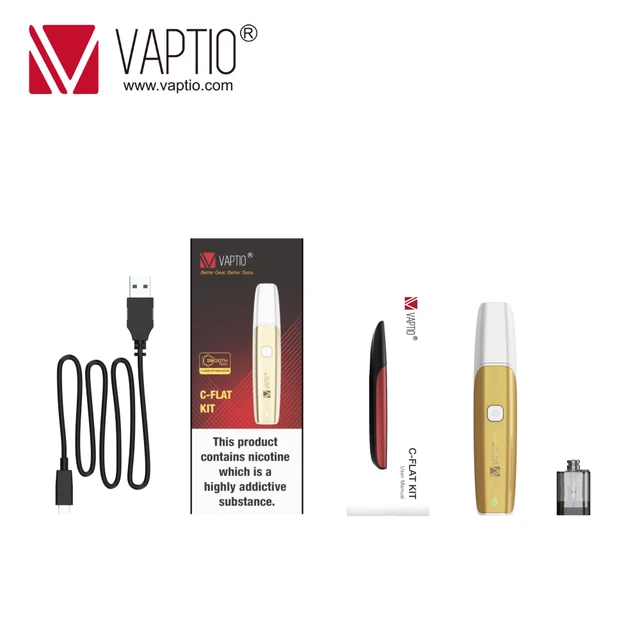 Vaptio C – Cigarette électronique plate, 15W, 1.5ml, Protection contre la vaporisation, batterie 350mah, chargeur USB, 1 ohm, KIT ecig