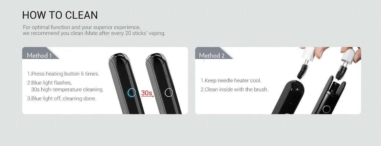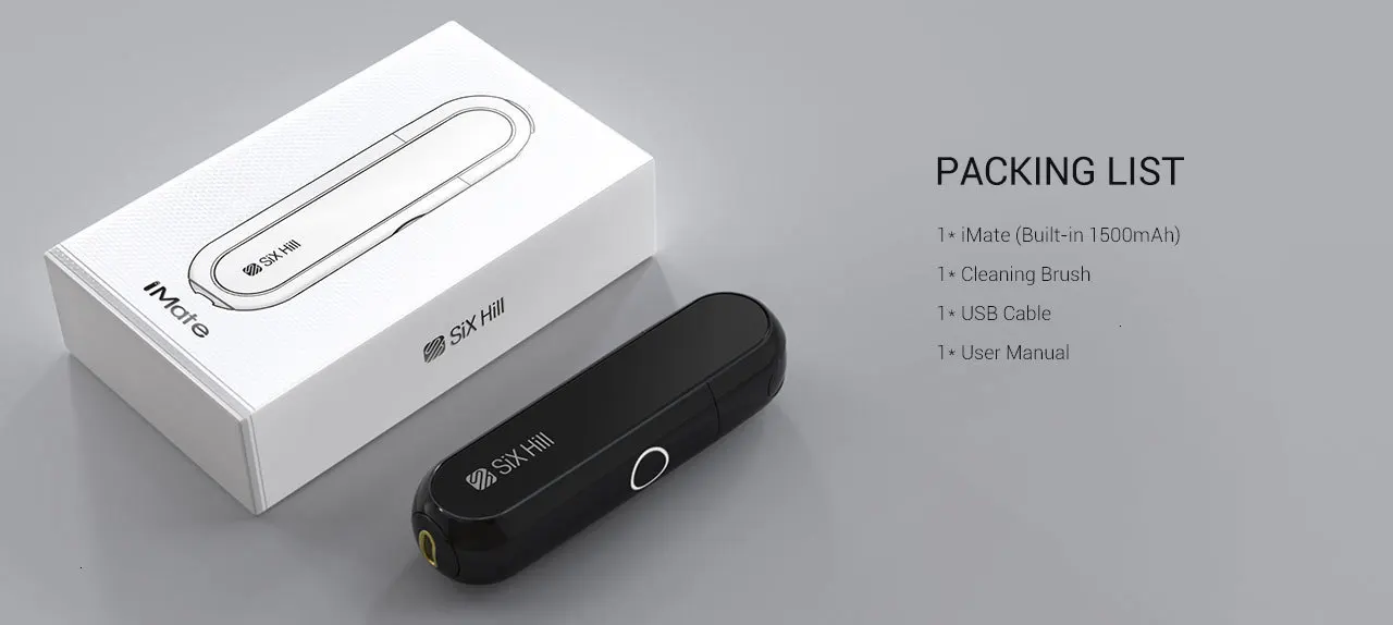 IMate est un système de tabac tout-en-un de Six Hill. Léger et discret dans la poche, il vous offre un plaisir supérieur du tabac à tout moment, n’importe où. Pour un style de vie simple et relaxant, iMate vous offre un moyen plus facile de brancher et de profiter d’un bâton de tabac. Son aiguille en céramique solide chauffe le tabac uniformément pour éveiller le goût le plus savoureux. Pour une seule charge, iMate peut chauffer 18-20 bâtons, et peut même rester en veille toute l’année, ce qui vous libère considérablement des recharges fréquentes.