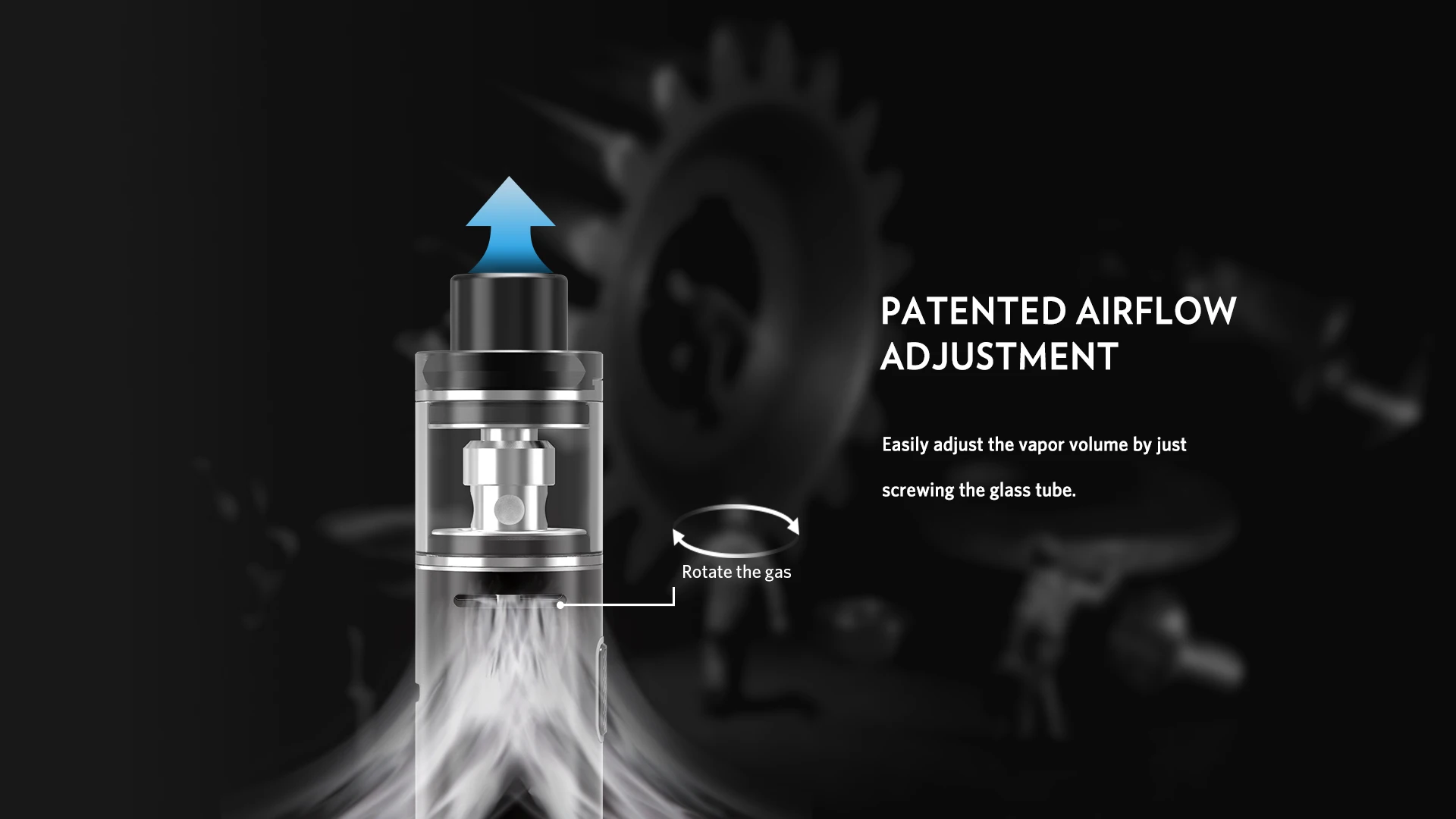 (Vous pouvez facilement régler le volume de vapeur en vissant simplement le tube de verre.)