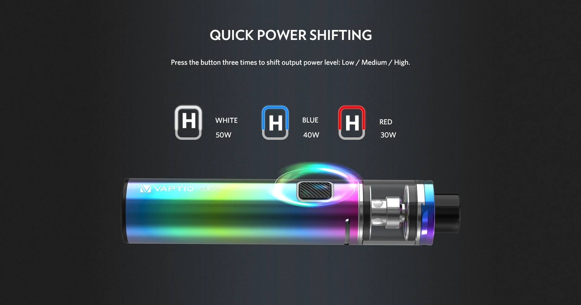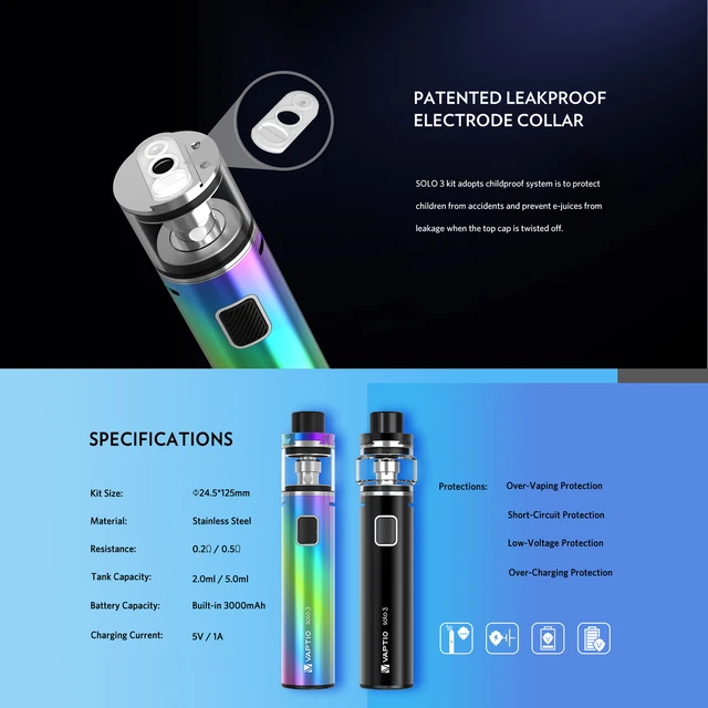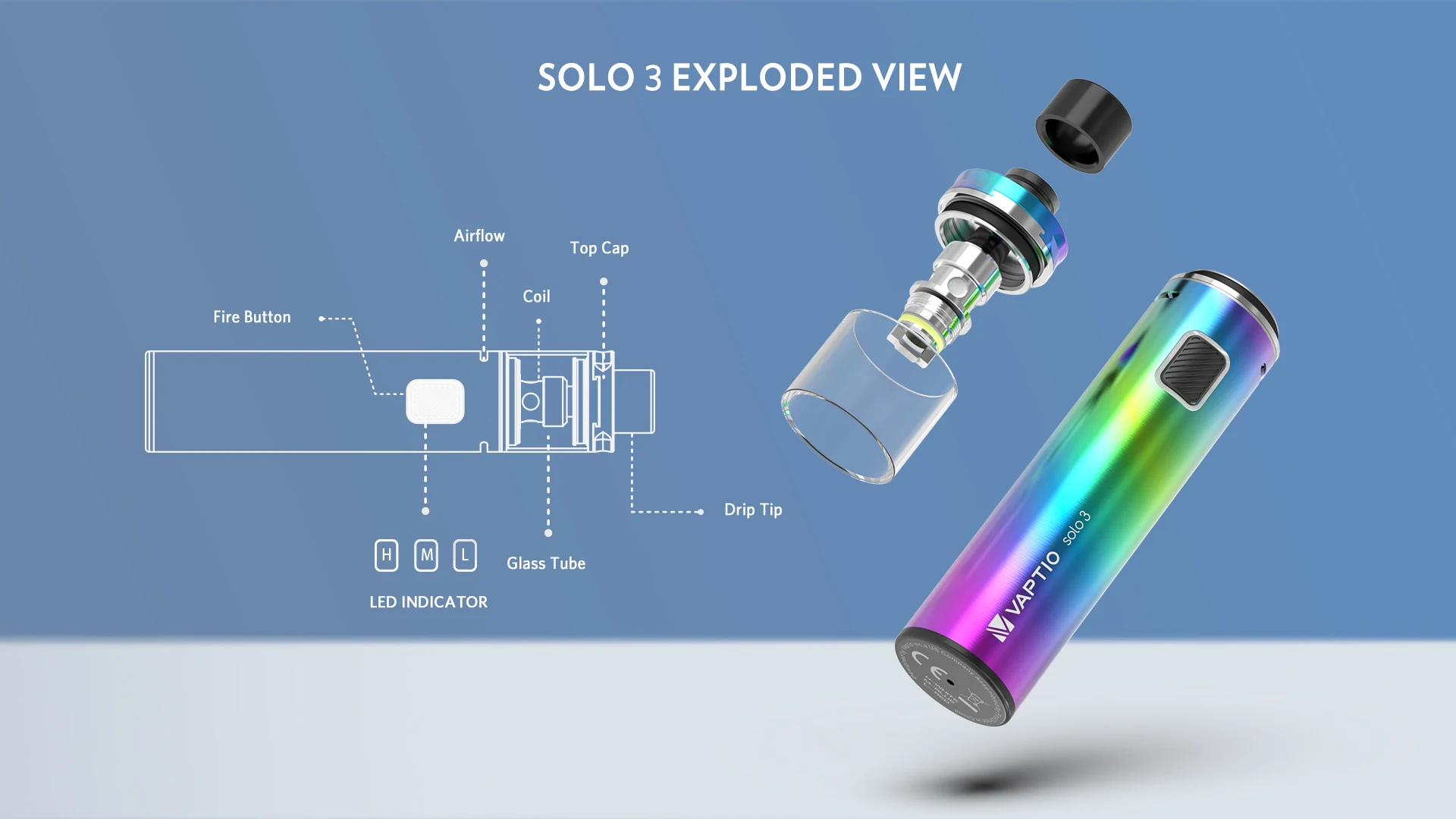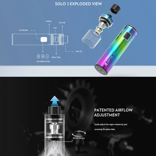 Vaptio – Cigarette électronique Solo 3, KIT Original avec batterie intégrée de 3000mAh, 2.0/5.0ml, vapeur réglable
