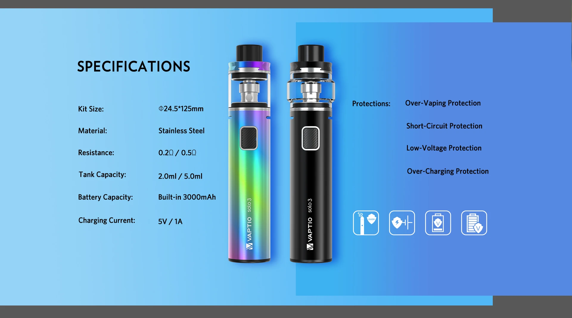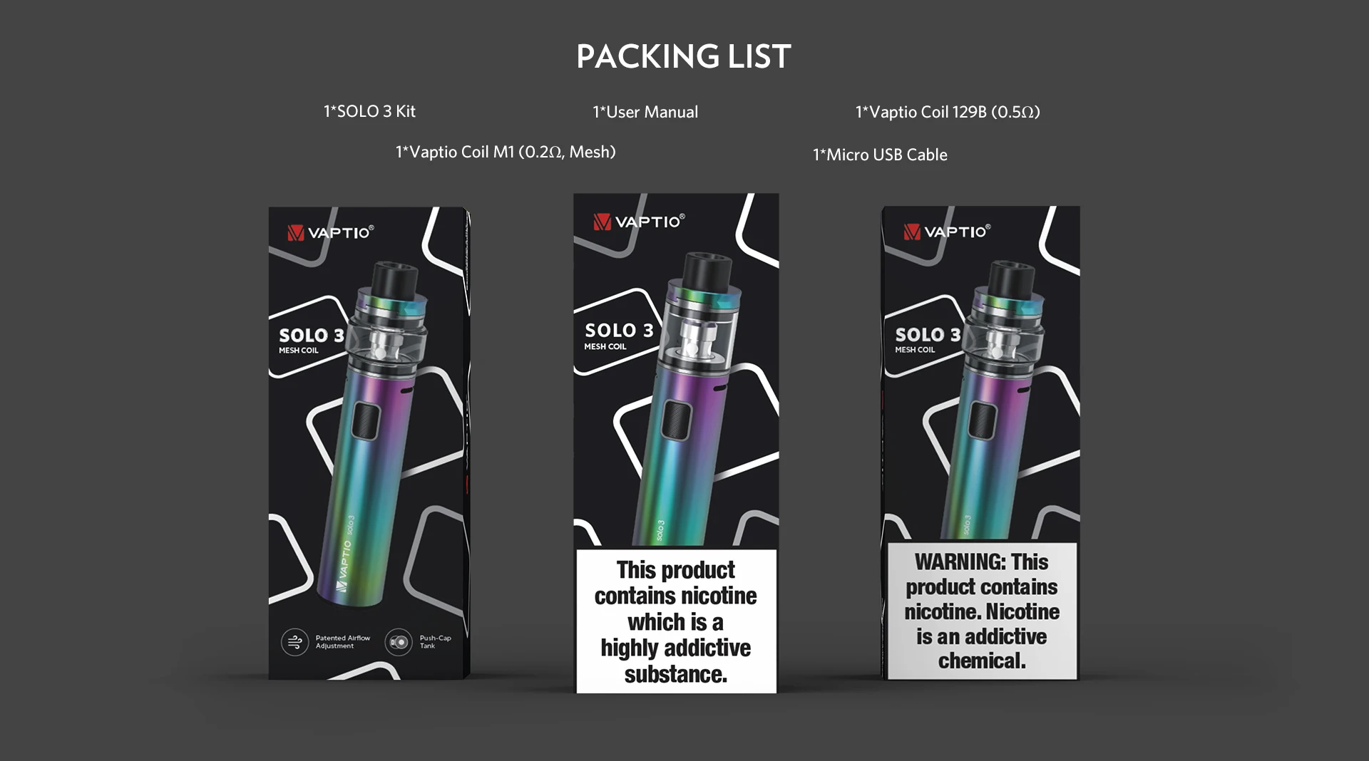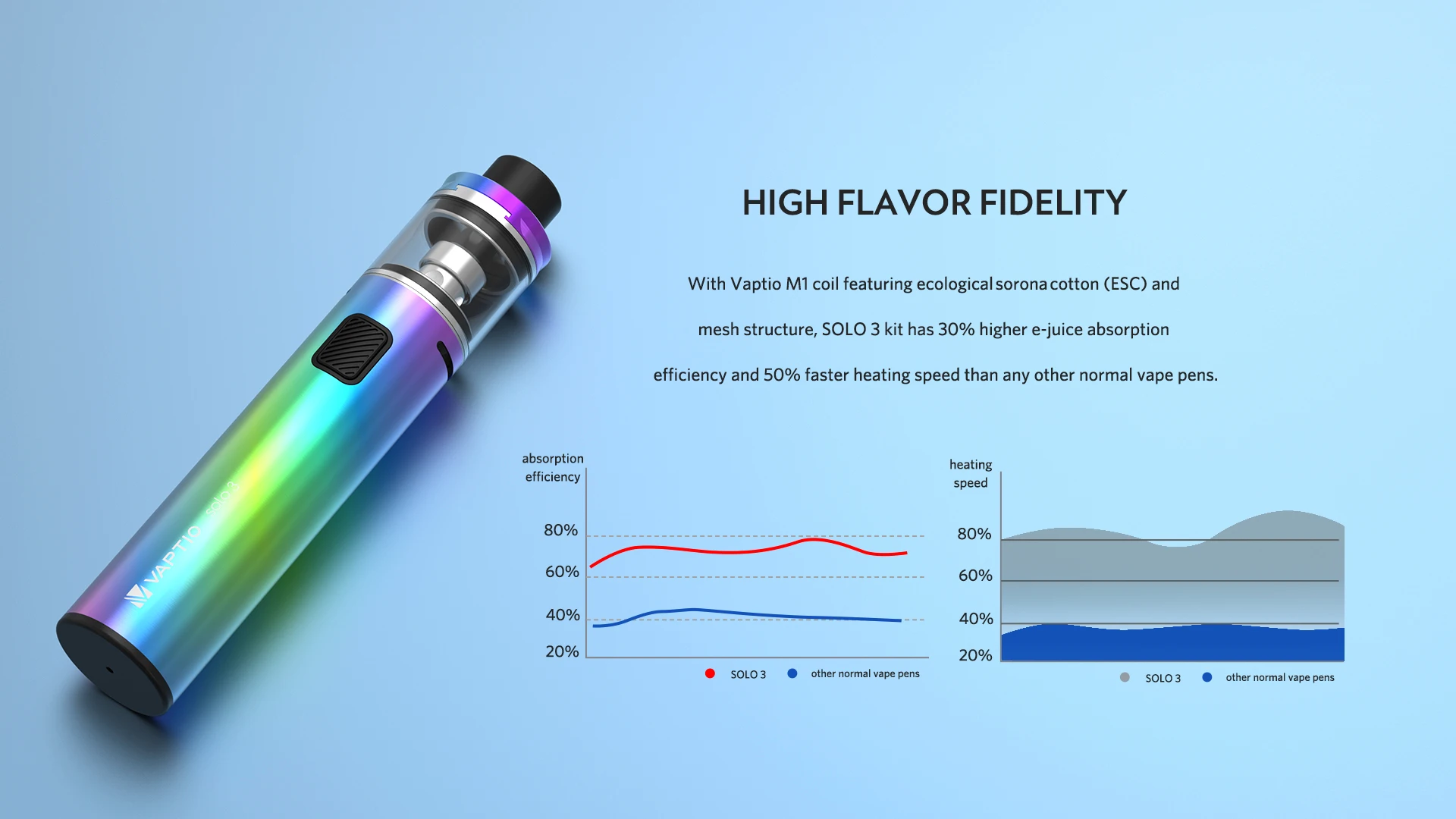 Vaptio – Cigarette électronique Solo 3, KIT Original avec batterie intégrée de 3000mAh, 2.0/5.0ml, vapeur réglable