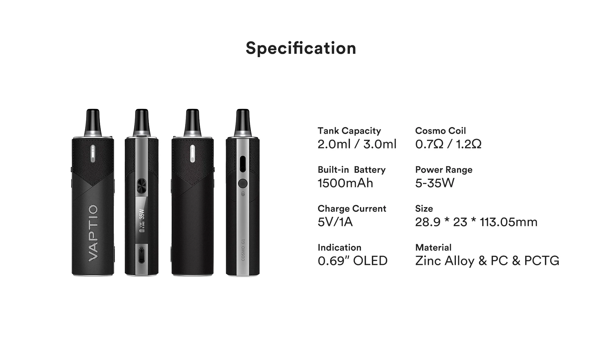 | Numéro de Modèle | Vaptio Cosmo G1 Kit |