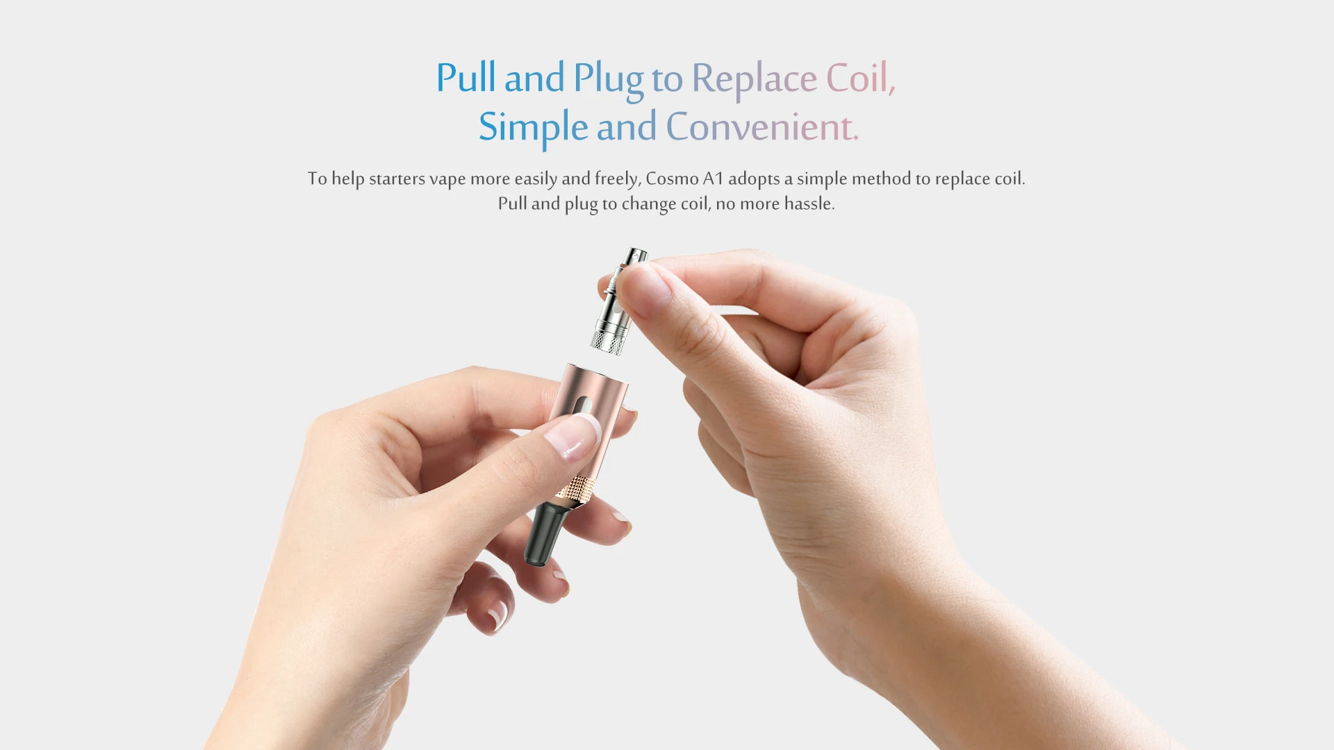 Pour aider les débutants à se vapoter plus facilement et plus librement, Cosmo A1 adopte une méthode simple pour remplacer la bobine. Tirez et branchez pour changer la bobine, plus de tracas.