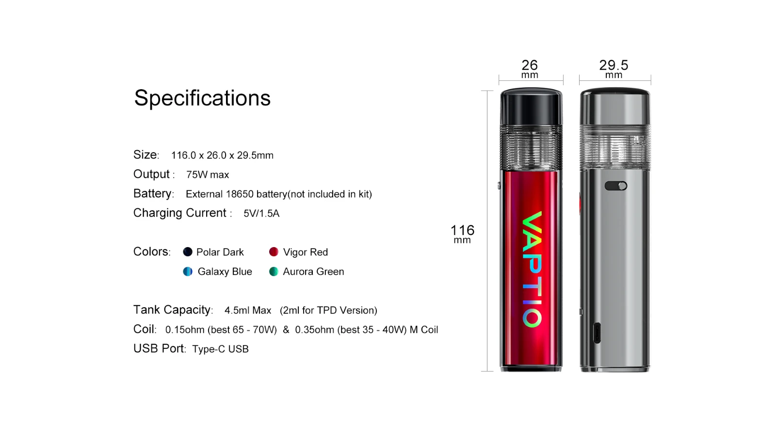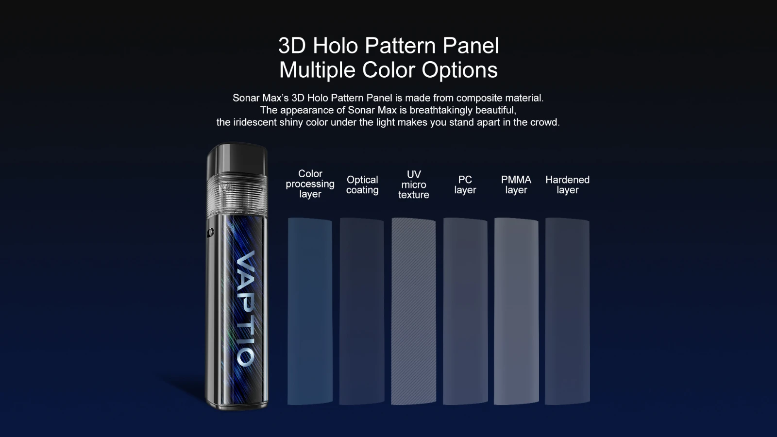 Vaptio – Kit de cigarette électronique Sonar Max, avec Pod Vape, cartouche de 75W et 4.5ml, écran couleur TFT de 0.96 pouces, sans batterie