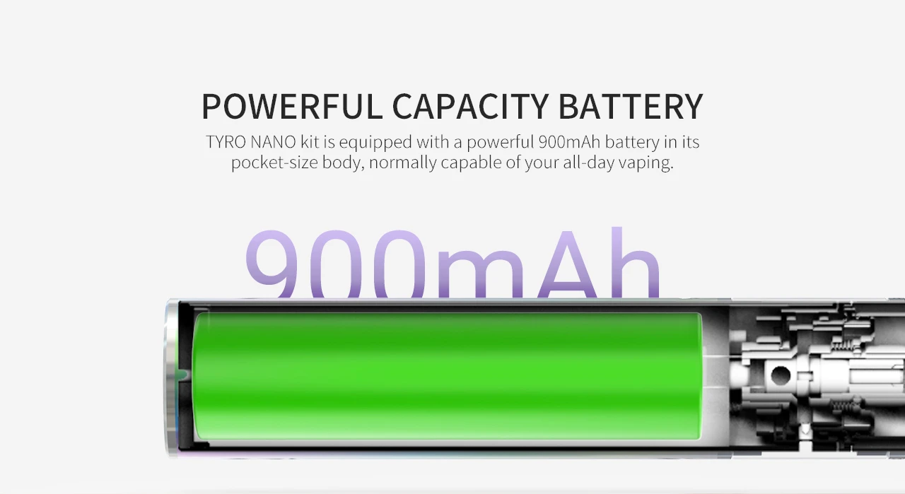 TYRO NANO est un kit de démarrage idéal pour toutes sortes de jus sans aucune opération compliquée. Compatible avec une série de bobines Vaptio Cosmo, vous pouvez profiter librement des énormes nuages en DL et des saveurs denses en MTL. Équipé d’une batterie intégrée de 900 mAh, il offre une puissance plus durable et vous apporte plus de plaisir de vapoter.