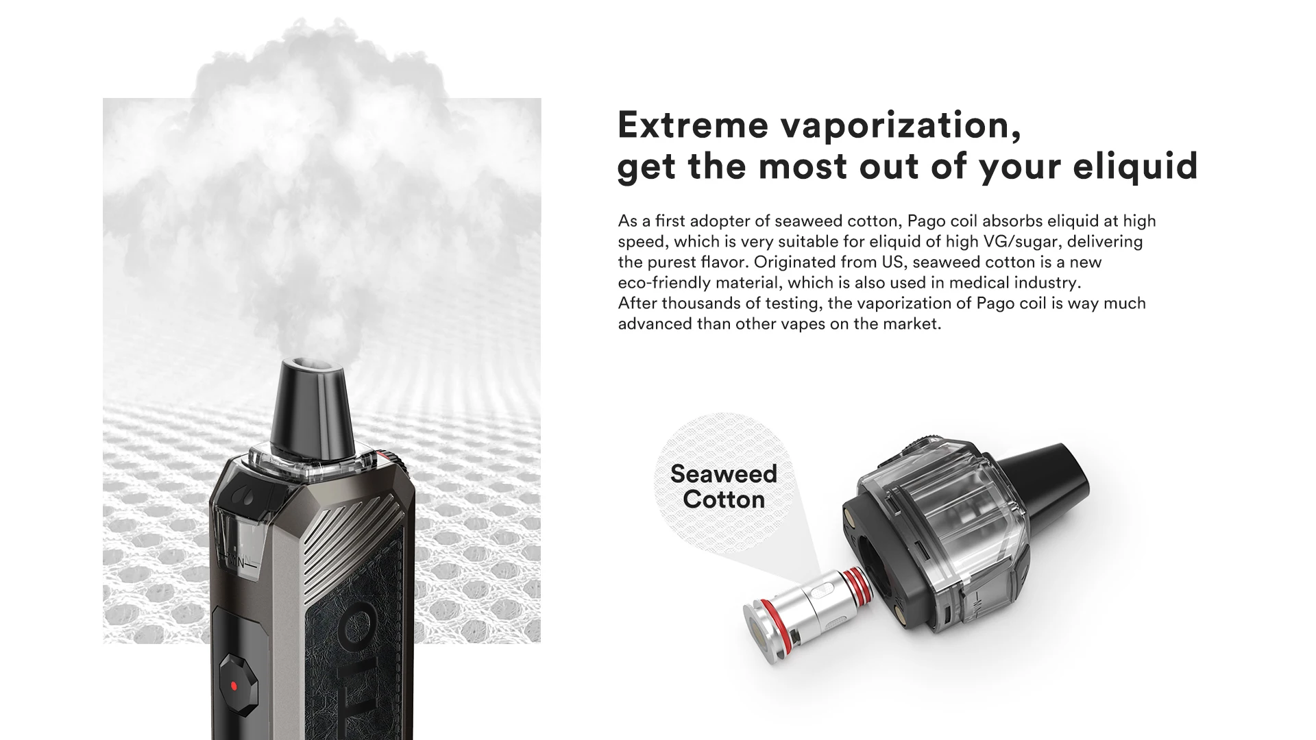 1. En tant que premier adoptant le coton d’algues, la bobine Pago absorbe les liquides à grande vitesse, ce qui est très approprié pour les liquides à haute teneur en VG/sucre, offrant la saveur la plus pure. Originaire des états-unis, le coton d’algues est un nouveau matériau écologique, qui est également utilisé dans l’industrie médicale.