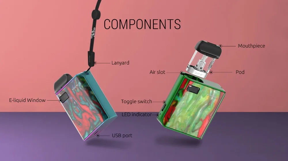 Bobine et un pod avec bobine régulière 1.0Ω qui peut offrir une superbe expérience de vapotage MTL; Les deux ont une capacité de 1.7ml, et vous