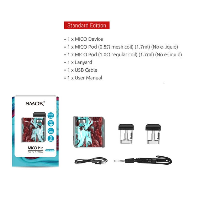 Batterie, MICO est suffisant pour que vous puissiez profiter de la vaporisation toute la journée. Il y a deux dosettes incluses dans ce kit, une dosette avec maille 0,8 Ω