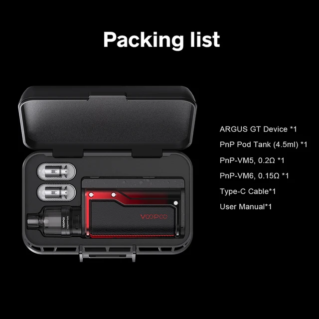 VOOPOO Argus – boîte Mod GT pour Cigarette électronique, 160W TC Mods 4.5ml PnP Pod, réservoir magnétique, vapoteur sans batterie 18650