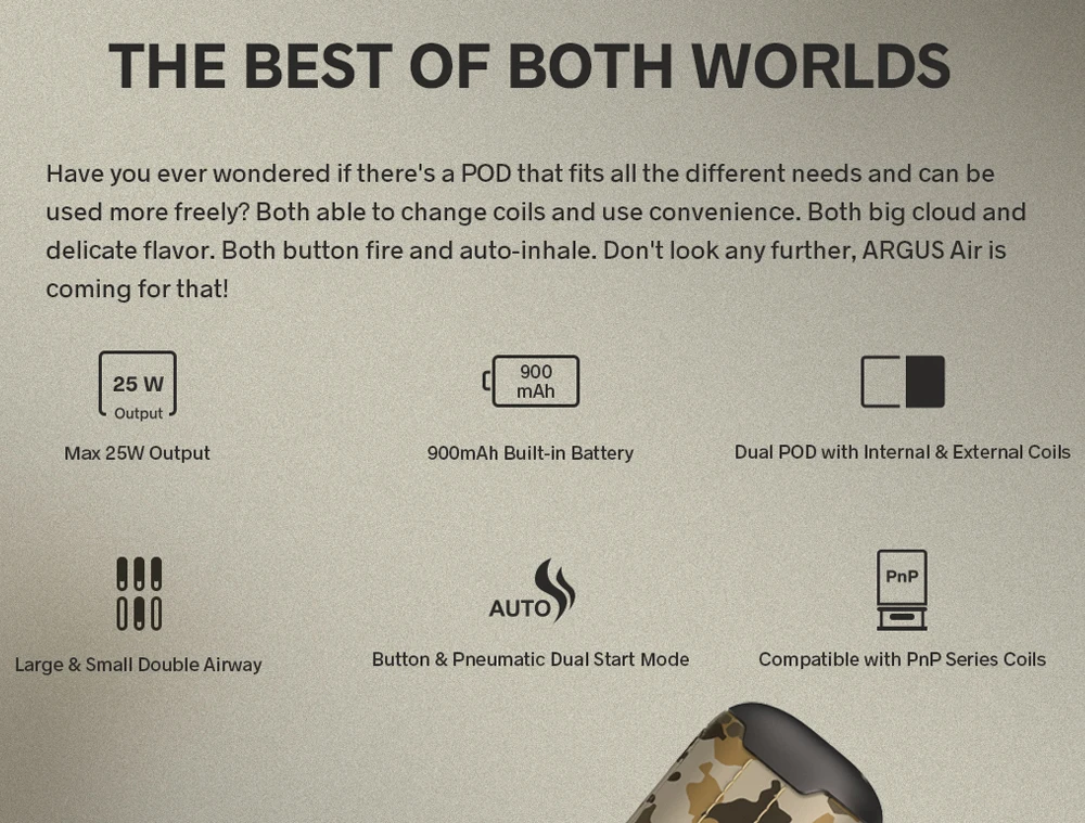 VOOPOO Argus Air Cartridge(2 Types), PnP coils over 0.6ohm
