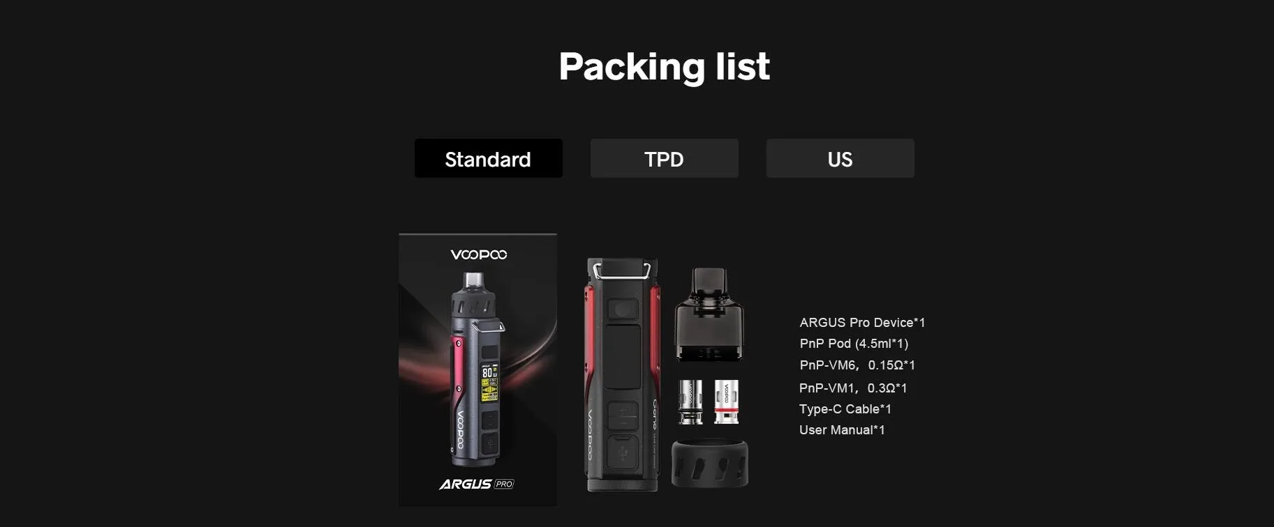 | Numéro de Modèle | VOOPOO Argus Pro Pod kit |