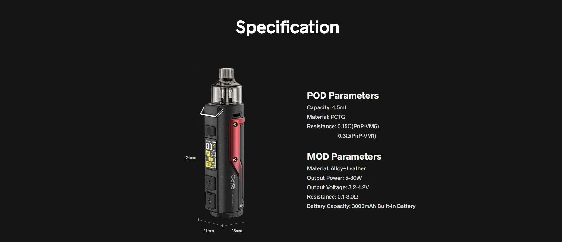 Argus Pro Kit est un kit de système de mod de pod qui adopte la fusion innovante du métal et du cuir, la combinaison intelligente de la couleur et du corps d’arc. Et il crée la prise la plus confortable avec un design ergonomique en utilisant des courbes multi-courbes. Composé d’une batterie intégrée de 3000mAh et d’un réservoir PnP pod de 4.5ml, il est si grand qu’il peut vous apporter une expérience de valeur sans précédent à l’extérieur. Le réservoir PnP Pod, il utilise un système de flux d’air infini qui prend en charge la régulation de toute taille des voies respiratoires. Et il est compatible avec toutes les bobines PnP, y compris RBA, vous offrant une vaporisation rapide et abordable. Et quant au Mod Argus Pro, il est surveillé par un incroyable nouveau GENE. Puce TT qui peut rapidement s’allumer en 0.001 secondes, et fournit également une identification intelligente de la bobine, du mode intelligent, du mode RBA, etc. Et il dispose d’une plage de puissance réglable de 5-80W, répondant pleinement à vos différents besoins. Par exemple, le mode RBA peut être ajusté selon vos préférences, vous permettant de contrôler entièrement la puissance de sortie et de profiter de son charme. En outre, il est conçu avec un écran couleur de 0.96 pouces pour afficher des informations claires et de multiples protections pour assurer votre sécurité.