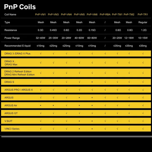 | Numéro de Modèle | VOOPOO PNP-VM1/VM3 |
