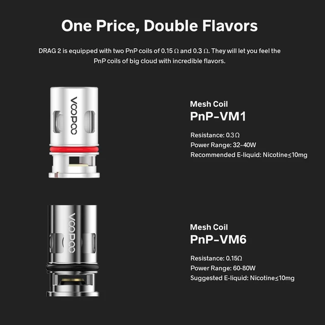 | Coils Resistance | PnP-VM6(0.15ohm), PnP-VM1(0.3ohm) |