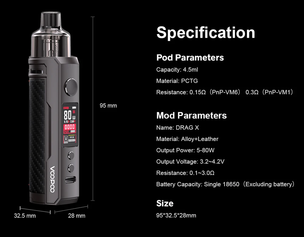 VOOPOO – Cigarette électronique Drag X, Kit de vapoteur Original 80W, cartouche 4.5ml GENE.TT Chip PnP-VM1 VM5 VM6, bobine DragX, sans batterie 18650, nouveauté