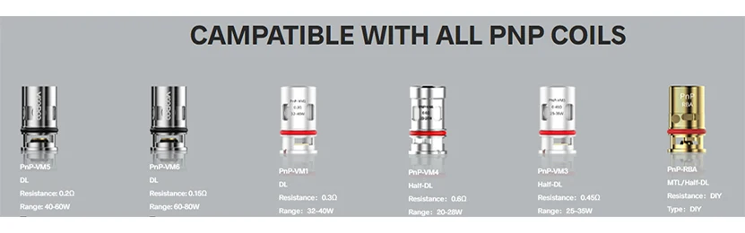 Résistance de la bobine: bobine PnP-VM1 (0.3Ω, 32-40W); Bobine PnP-TM2 (0.8Ω, 12-18W)