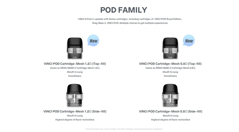 Fit Pour: VINCI Pod Cartouche Maille 0.8/1.2Ω (MTL), VINCI Pod Cartouche Royal Édition et Glisser Nano 2 Pod Cartouche