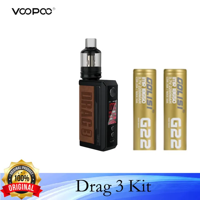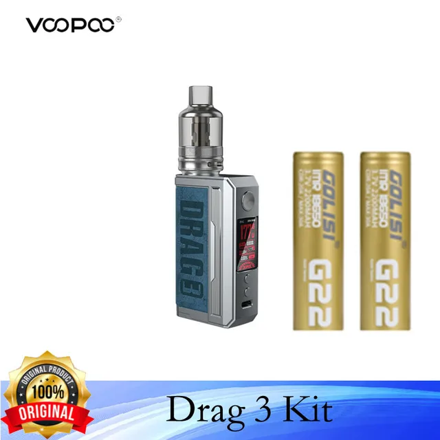 Voopoo – DRAG 3 avec deux batteries 18650, 177W, avec réservoir de dosette 5.5ml TPP, bobine TPP DM1 DM2, narguilé électronique