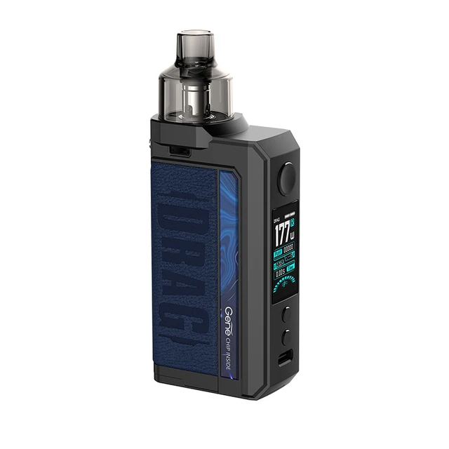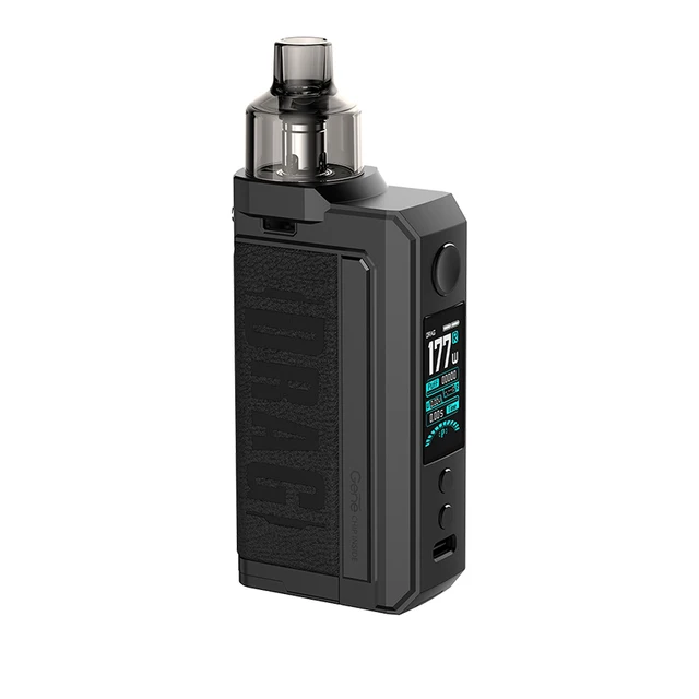 Drag Max Kit est un dispositif époxy à double batterie avec atomiseur magnétique. Il est alimenté par deux batteries 18650 avec une plage de puissance de 5-177W. Fabriqué en métal et en cuir, il est résistant et doux. La marque nouvellement mise à niveau GEME.FAN 2.0 chip donne Drag Max certaines fonctions innovantes, telles que l’allumage extrême 0.001s, la sortie stable dynamique, interactif intelligent. Il est livré avec deux thèmes d’interface utilisateur de styles différents, vous pouvez profiter des deux thèmes avec un écran couleur TFT de 1.08 pouces. De plus, Drag Max offre deux modes pour répondre aux différents besoins de vaporisation: mode intelligent facile à utiliser pour les débutants, mode RBA sans alimentation pour les vapeurs professionnelles. Il a une compatibilité universelle de l’atomiseur: PnP Pod, PnP MTL Pod, PnP RTA Pod et vous pouvez utiliser celui que vous aimez avec Drag Max. Il est également compatible avec toutes les bobines PnP. La capacité du pod est de 4.5ml.