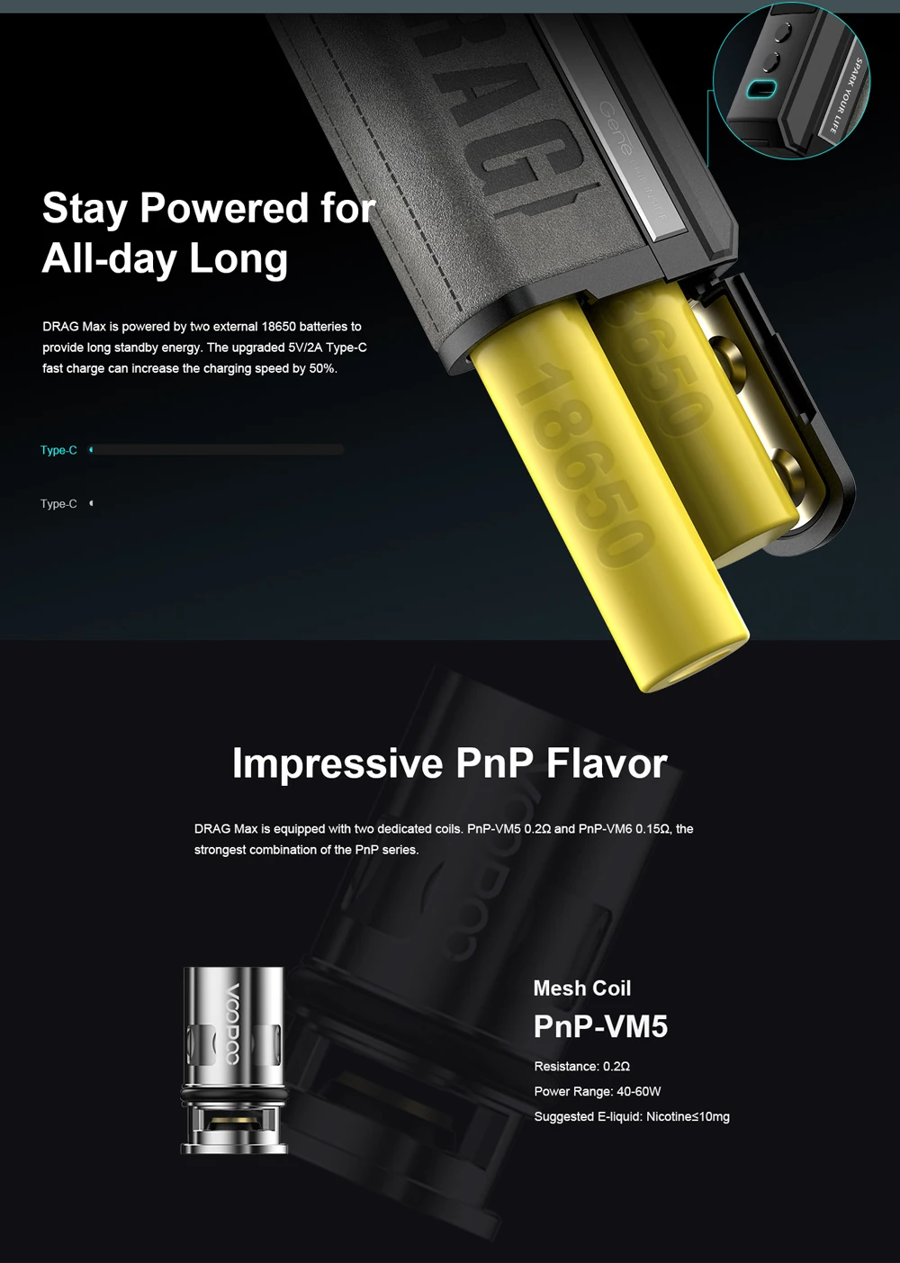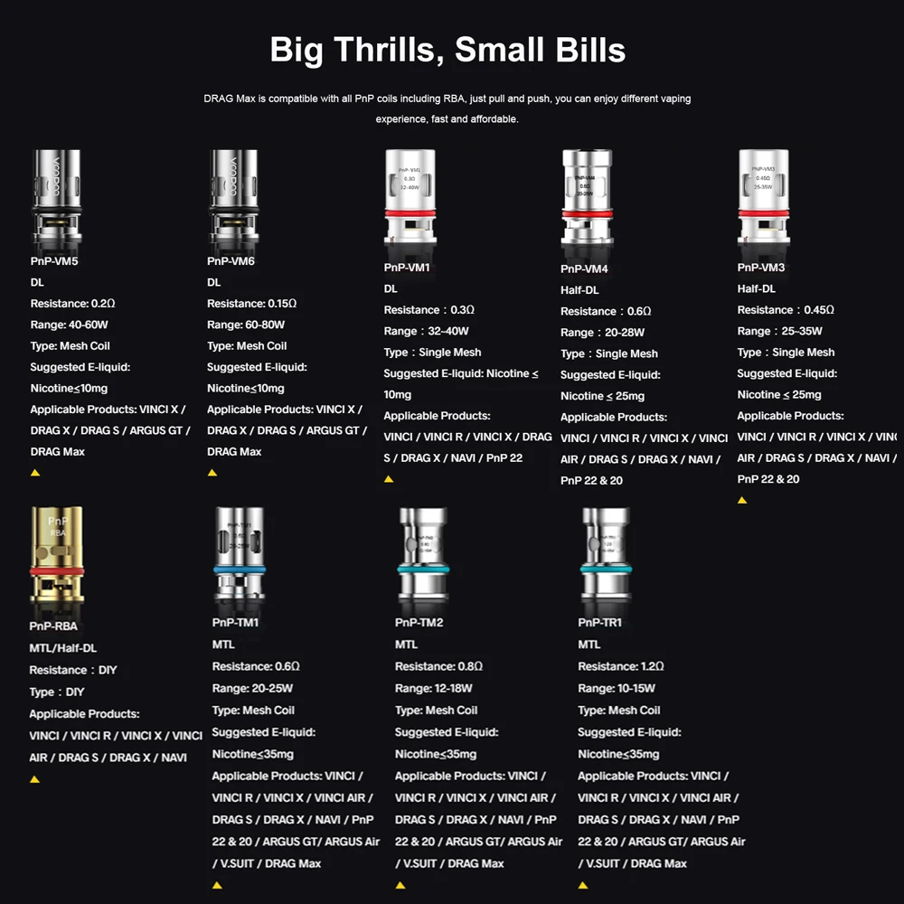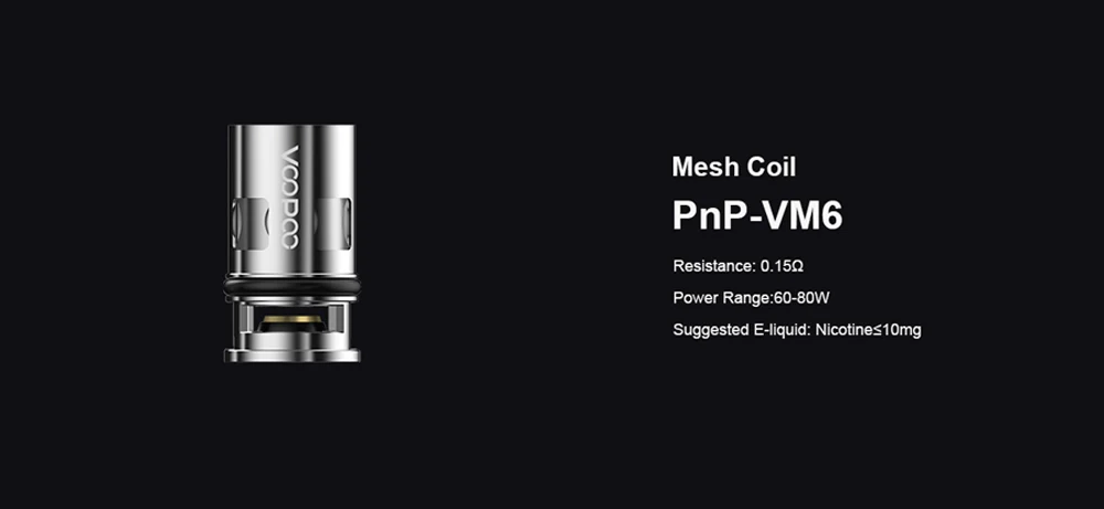 Résistance du Pod: 0,2ohm (PnP-VM5), 0,15ohm (PnP-VM6)