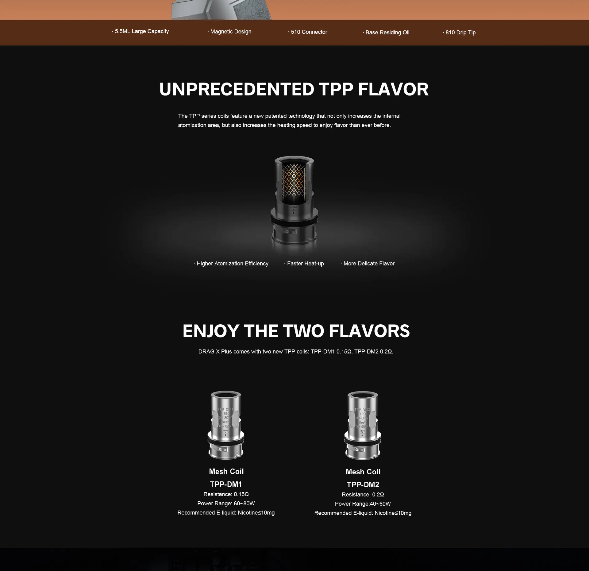 Drag X Plus Professional Edition Kit comprend Drag X Plus Professional Edition Mod et TPP 2.0 Pod Tank. Il est fabriqué en zinc, cuir et PCTG pour une sensation de main plus sympathique et confortable. Drag X Plus Professional Edition Mod prend en charge une seule batterie 18650/21700 et a une plage de puissance de sortie de 5-100W, il prend également en charge le mode VW/SMART/RBA, vous pouvez obtenir les informations de vapotage facilement avec un design d’écran TFT de 0.96 pouces. Le réservoir de dosettes TPP 2.0 est compatible avec les bobines TPP. Vous pouvez assortir d’autres atomiseurs avec Drag X Plus Professional Edition Mod par connexion 510.
