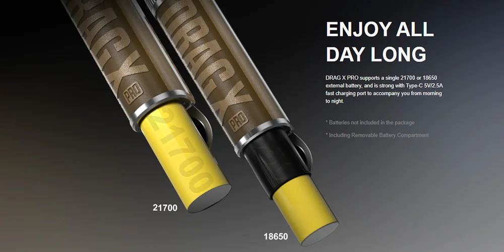 Batterie: batterie simple 18650/21700 (non incluse)