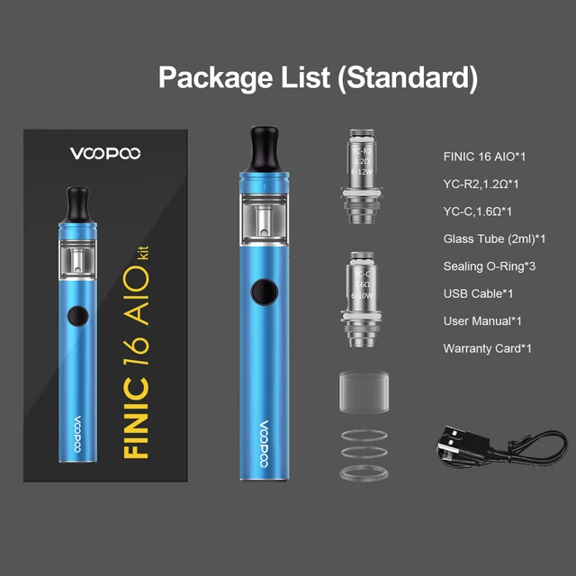3 avis pour VOOPOO Finic 16 AIO Vape Stylo Kit 850mAh Batterie Intégrée 2ml Capacité 12W Vape Kit De Démarrage ajustement YC-R2 YC-C 1.2/1.6ohm E-Cigarette