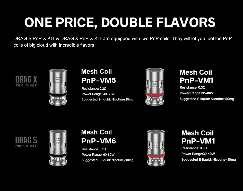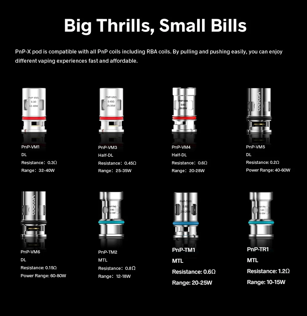 | Coils Resistance | 0.2ohm(PnP-VM5), 0.3ohm(PnP-VM1) |