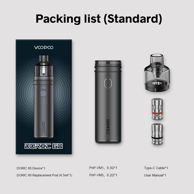 2 avis pour VOOPOO – Kit de démarrage pour Cigarette électronique, avec 60 dosettes, avec réservoir PnP de 4.5ml, batterie intégrée de 2500mAh, 60W
