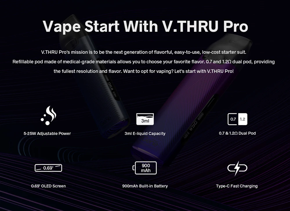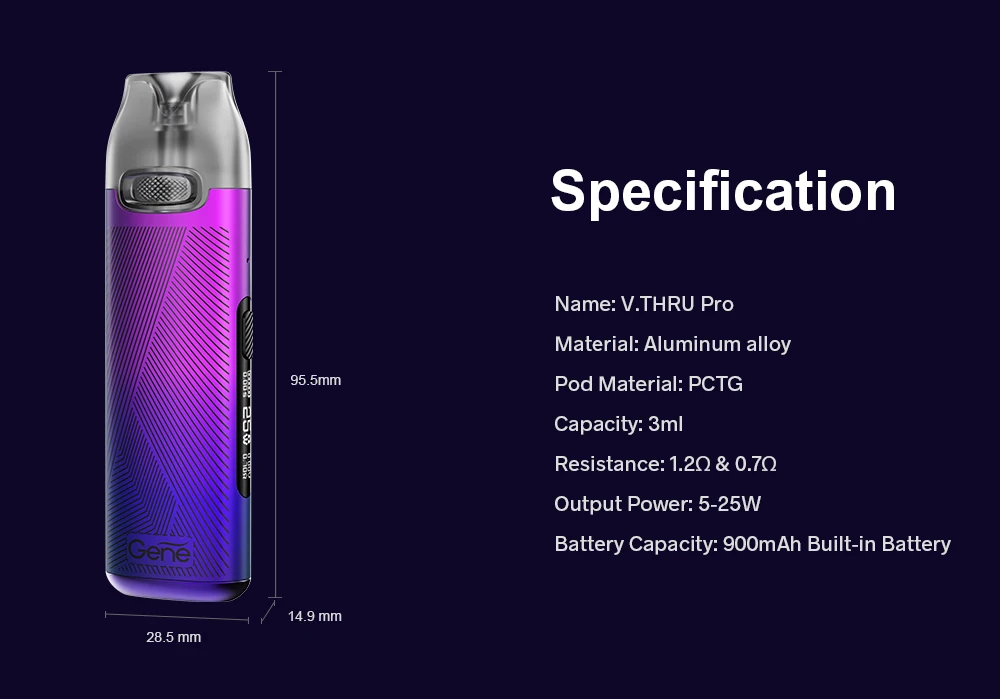 | Compatible Model | VOOPOO V.THRU Pro Pod Cartridges (0.7ohm / 1.2ohm) |