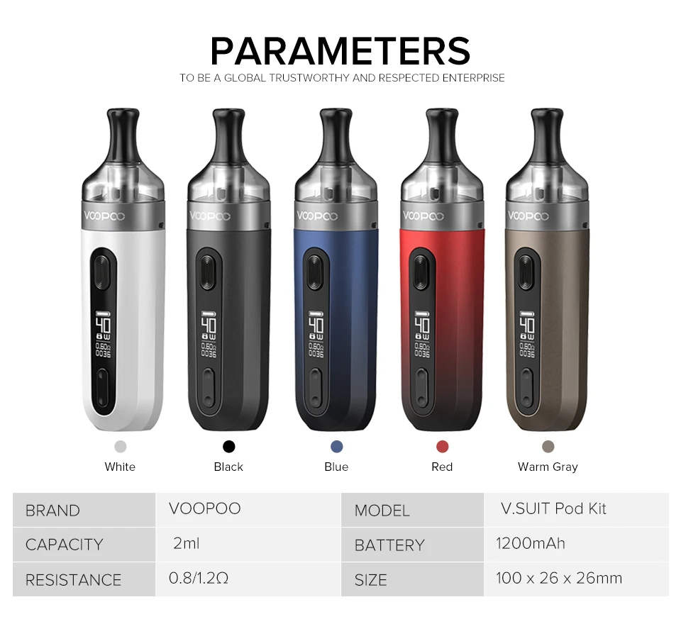 V. Le costume est un kit de dosette de démarrage unique. Son apparence est similaire au Kit de stylo, et ses fonctions atteignent le niveau riche de POD. Corps léger semblable à la peau, batterie intégrée de 1200mAh, avec charge rapide de Type C. V. La combinaison permettra d’obtenir un nouveau niveau de toucher et de saveur.
