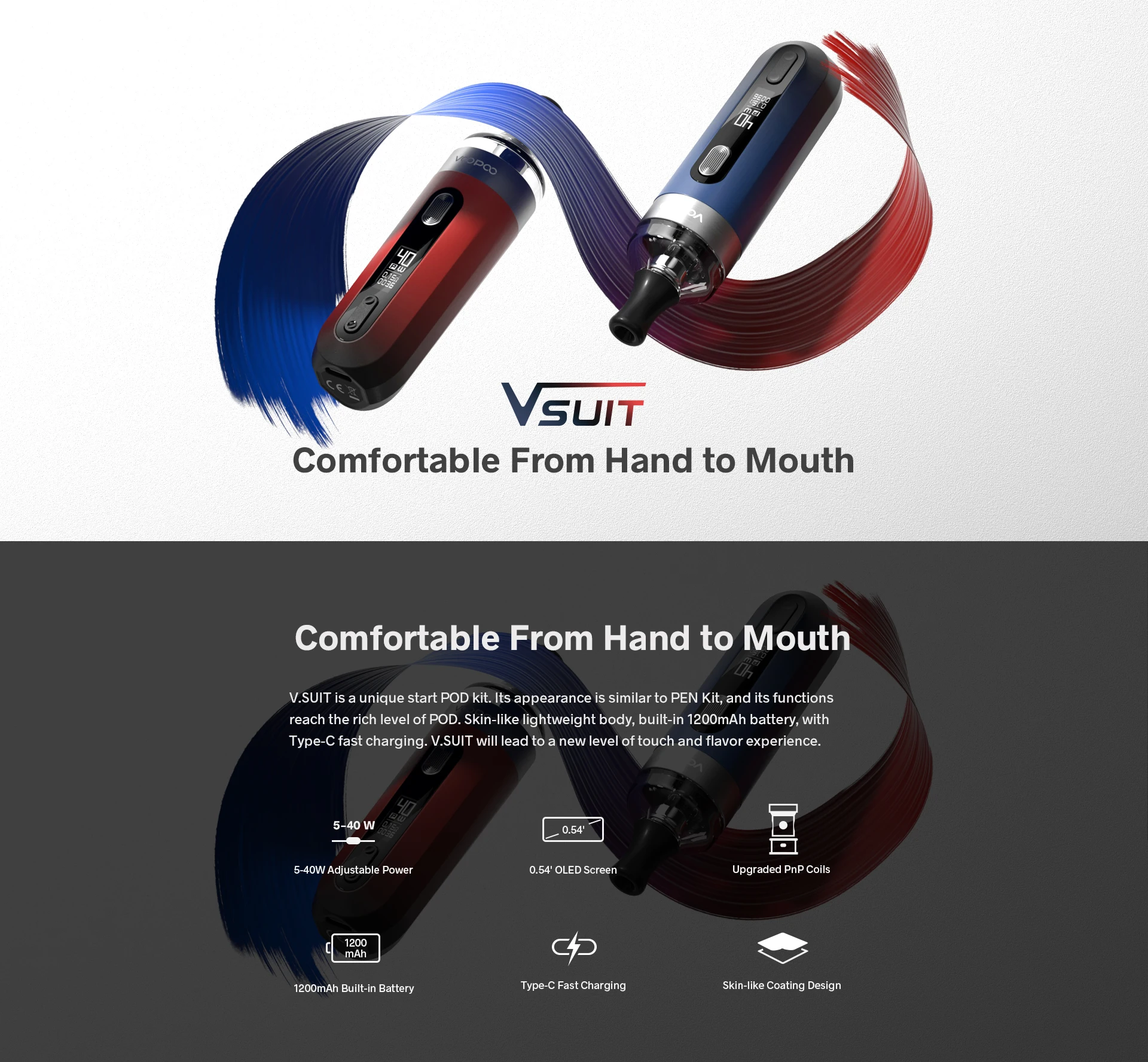 VOOPOO V.SUIT Pod Vape Kit 40W 1200mAh batterie V SUIT 2ml cartouche PnP-TR1 PnP-TM2 bobine Cigarette électronique vaporisateur