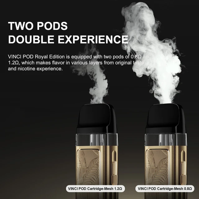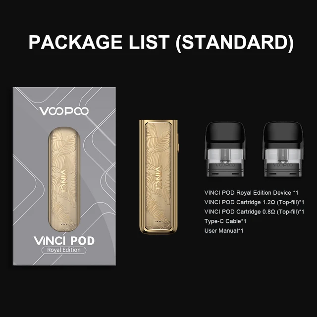 VOOPOO – Kit POD VINCI édition royale pour E-Cigarette, 15W, batterie intégrée de 800mAh, cartouche de 2ml, 0,8 ohm, 1,2 ohm, système de résistance