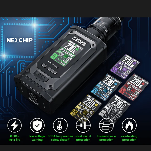 WOTOFO – Kit de Cigarette électronique MDura Pro, 230W, avec réservoir nexMESH Pro 4.5ml, double batterie 18650, Original