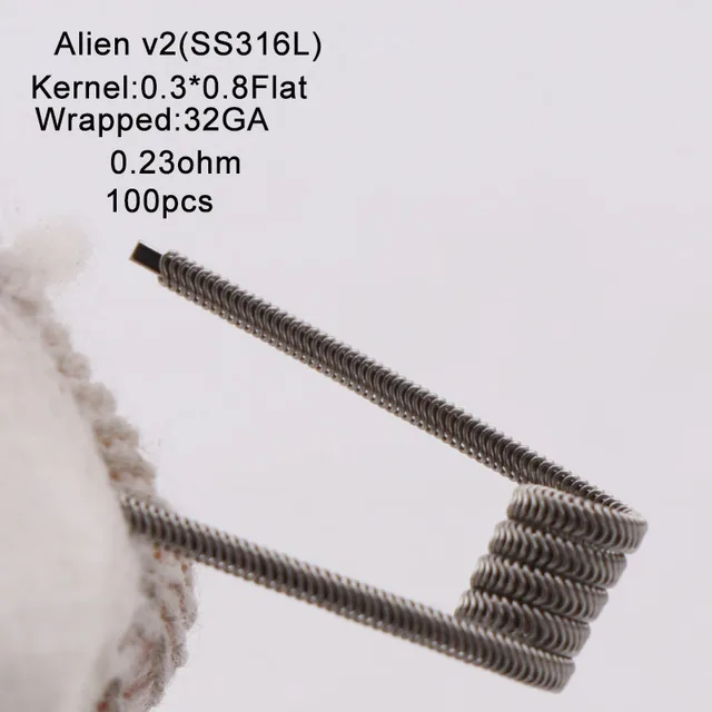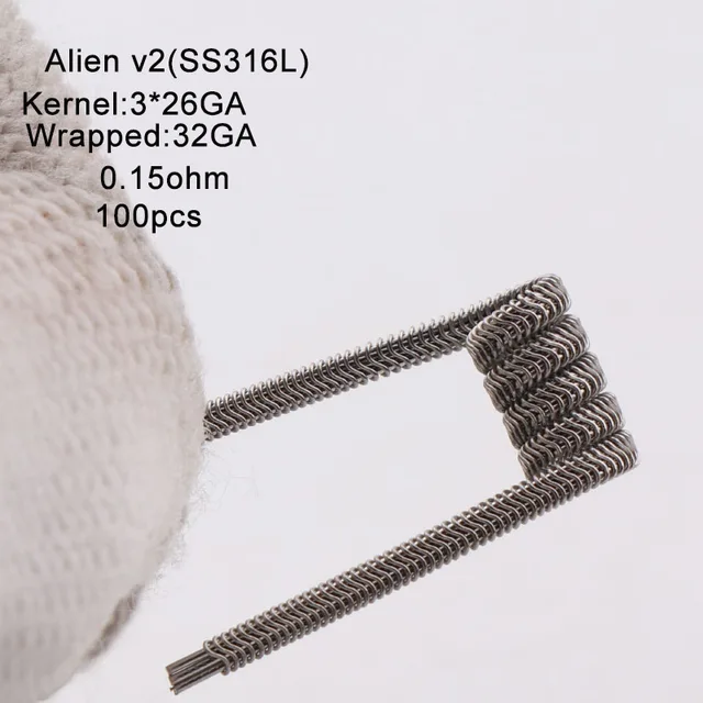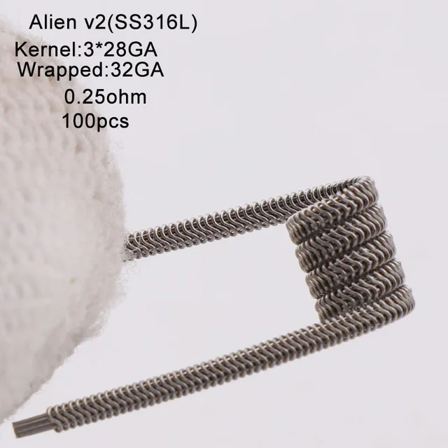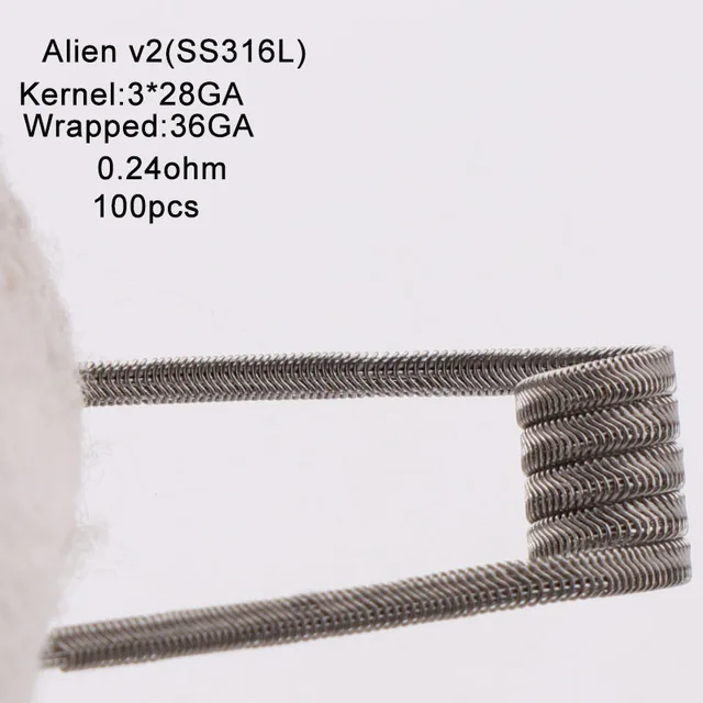 Nouveau XFKM NI80 A1 SS316L 100 pcs/lot bobine pré-construite ALIEN V2 fil bobines résistance de chauffage Fit RDA RDTA bricolage atomiseur