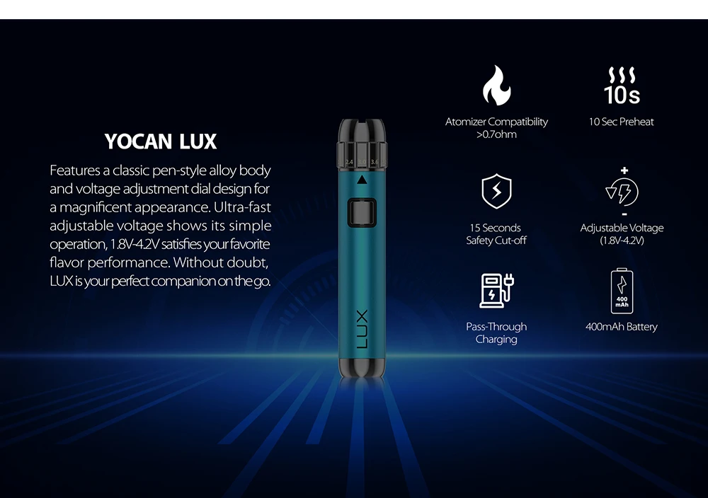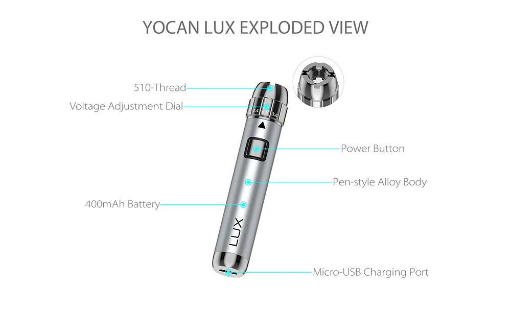 Yocan LUX – stylo vapoteur Original, batterie 400mAh, 510 filetage, tension réglable, vaporisateur de cigarettes électroniques
