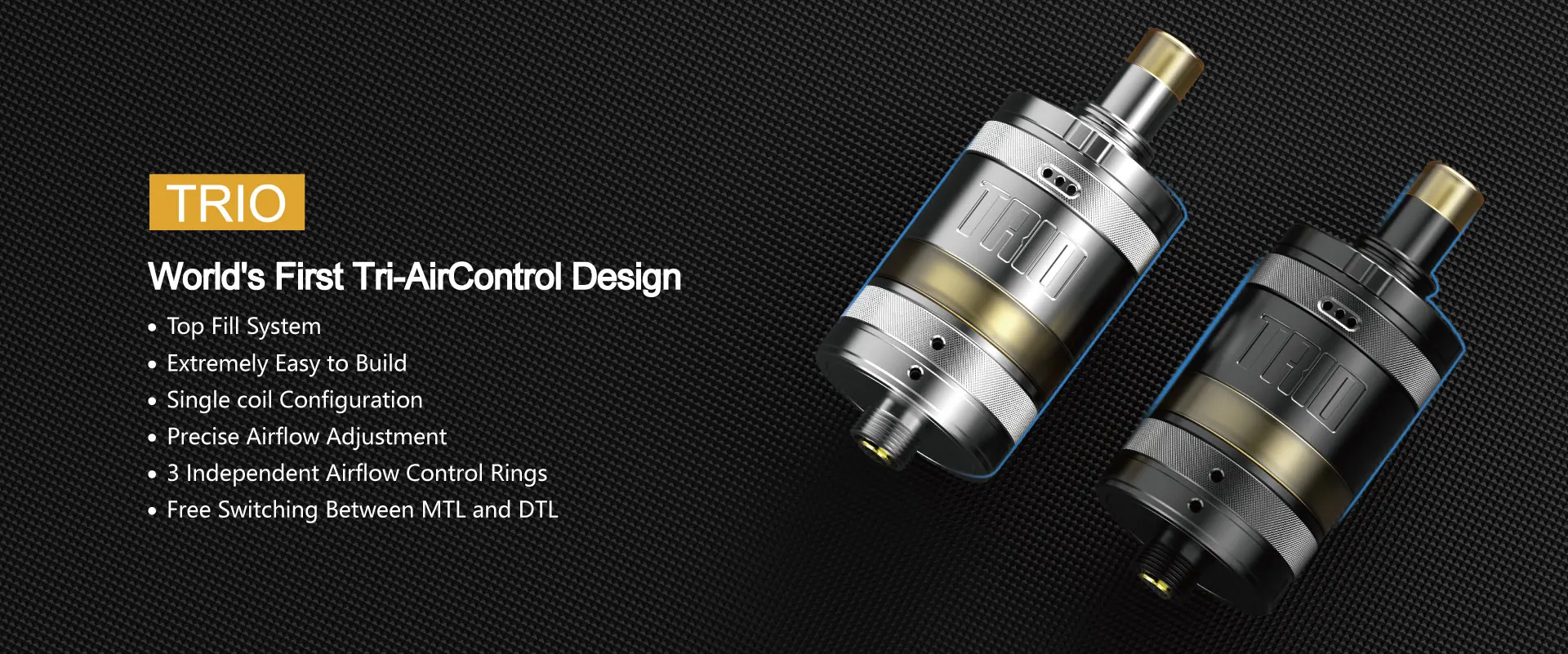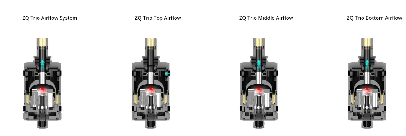 Après le succès énorme des appareils ZQ Vapor, nous sommes fiers de présenter un nouveau membre de la famille ZQ Vapor, leTRIO RTA-première RTA au monde avec 3 anneaux de contrôle de flux d’air.