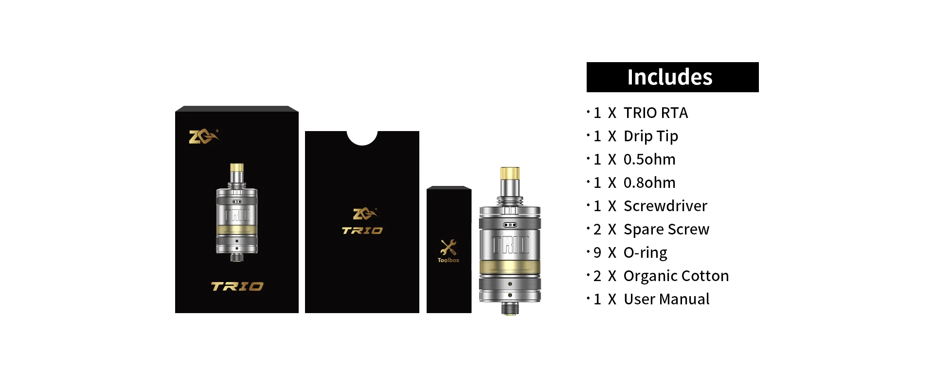 Après le succès énorme des appareils ZQ Vapor, nous sommes fiers de présenter un nouveau membre de la famille ZQ Vapor, leTRIO RTA-première RTA au monde avec 3 anneaux de contrôle de flux d’air.